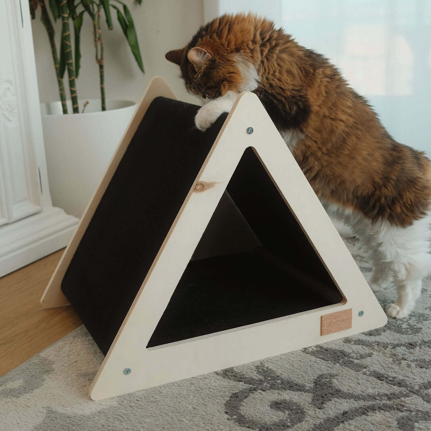 This multifunctional design makes the teepee an elegant alternative to traditional cat trees and scratching posts, offering both functionality and style in one beautifully crafted piece.